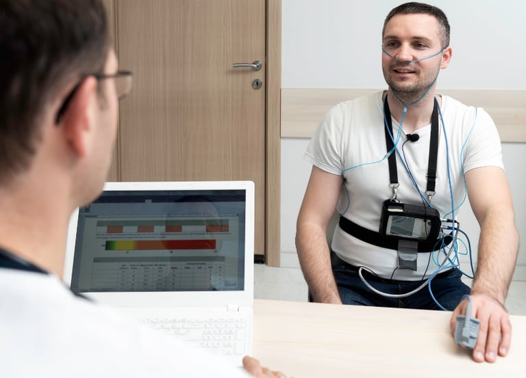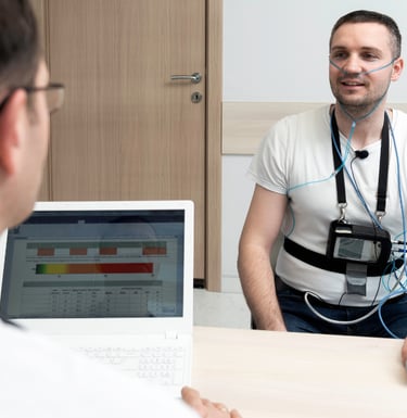 Es un estudio simplificado que se realiza en domicilio, es de fácil realización por el paciente mismo. Funciona como un ¨Holter¨ de la respiración durante el sueño y permite detectar múltiples trastornos respiratorios ligados al sueño.
